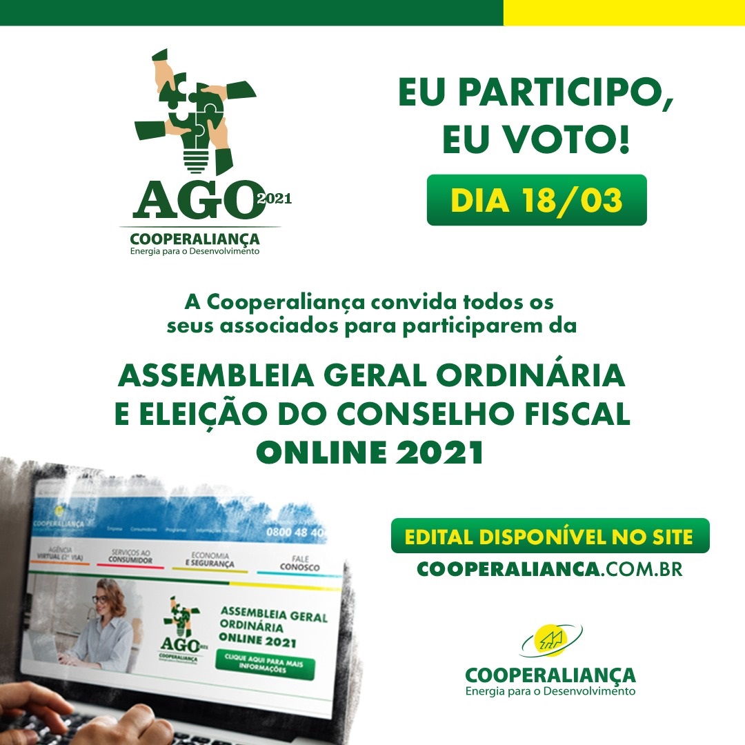 26.02.2021 Cooperaliança lança edital da Assembleia Geral Ordinária 2021 + CONTINUAR LENDO