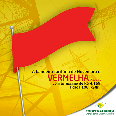 01.11.2019 Bandeira tarifária para mês de novembro é vermelha - patamar 1 + CONTINUAR LENDO