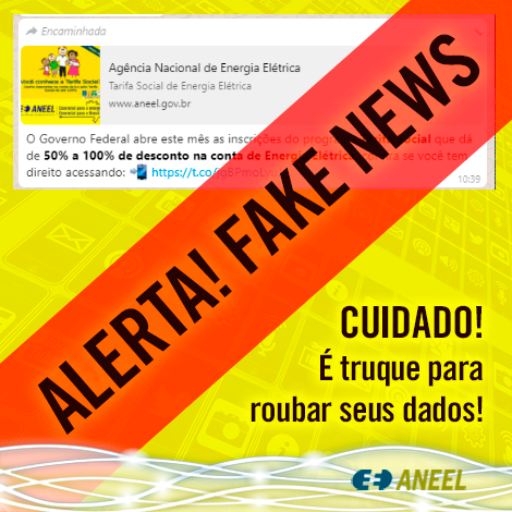 19.09.2019 Notícia falsa sobre a ANEEL e a Tarifa Social de Energia Elétrica + CONTINUAR LENDO