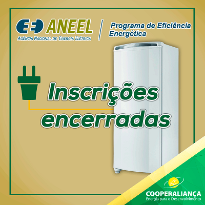 Após dois meses de cadastros, a Cooperaliança encerrou na última sexta-feira, 16, as inscrições para o Programa de Eficiência Energética (PEE), que irá realizar a troca de 300 refrigeradores na área de abrangência da cooperativa. A partir de agora, a equipe técnica seguirá com as vistorias, para confirmar os dados de cada inscrição e posteriormente realizar a entrega do aparelho aos selecionados.
