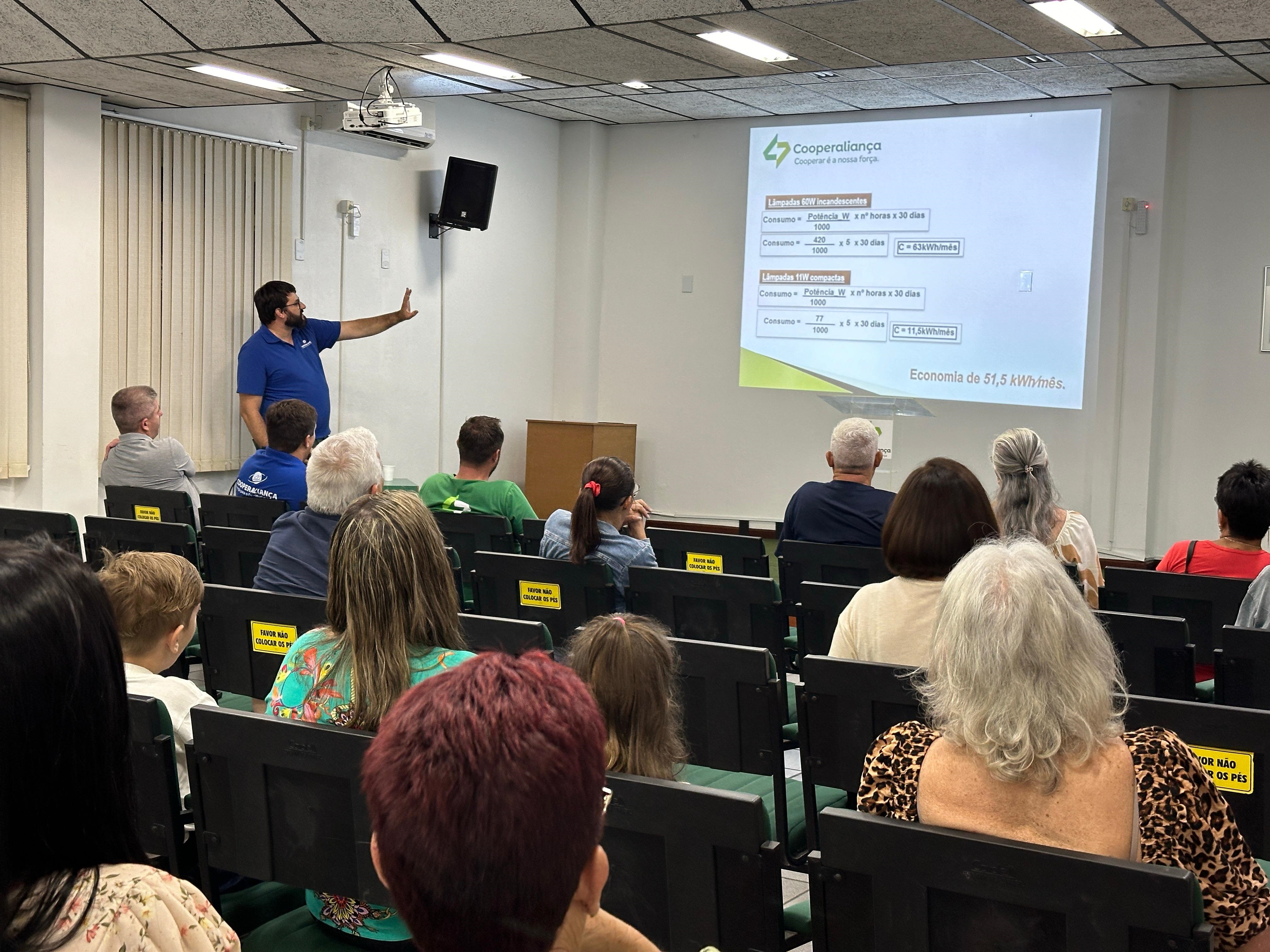 A Cooperaliança realizou nesta terça-feira, 26, um treinamento e capacitação para os consumidores beneficiários do Programa de Eficiência Energética (PEE) de 2024. O encontro foi uma oportunidade para que os participantes esclarecessem dúvidas relacionadas ao consumo e à economia de energia elétrica.