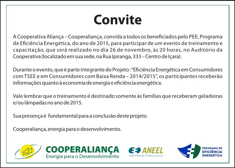 Se sua família foi beneficiada pelo PEE 2015, este convite é para você!