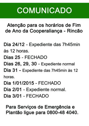 18.12.2014 Horários de Fim de Ano + CONTINUAR LENDO