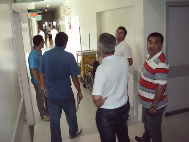 A visita foi acompanhada por um integrante da RJ Instalações Elétricas, o engenheiro Marcus Goes. A RJ é a empresa responsável pelo pré-diagnóstico energético do Hospital, e agora, pelo acompanhamento da execução do Projeto.