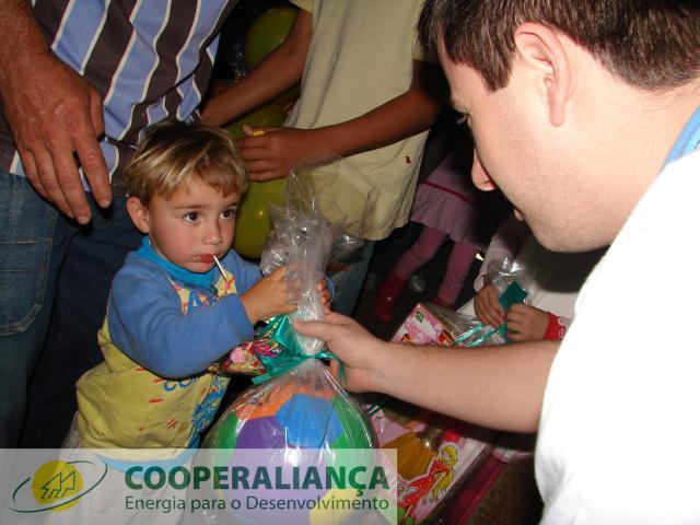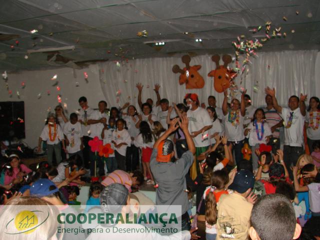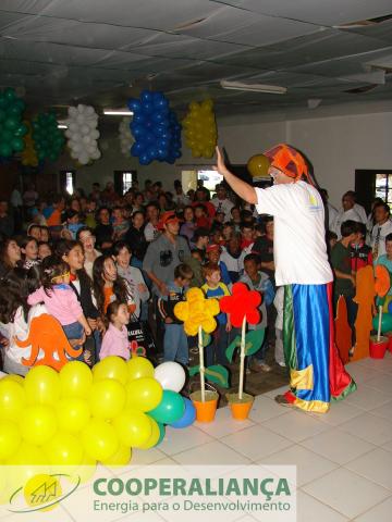 Em parceria com as instituições Associação Amigos do Bairro Esperança e Conselho Pastoral da Comunidade do Bairro Esperança, os colaboradores da Cooperativa, juntamente com a direção da empresa, realizaram, no dia da criança, uma festa em comemoração a data. Com direito a animação do palhaço Pira, presença do mascote da Cooperaliança, o Mega Watt, entrega de presentes e muita brincadeiras, as mais de 250 crianças passaram uma manhã inteira participando do projeto.